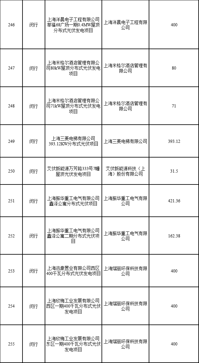 13個(gè)項(xiàng)目申請(qǐng)項(xiàng)目變更條件予以確認(rèn),其中:企業(yè)分布式項(xiàng)目5個(gè)。(1)經(jīng)青浦區(qū)發(fā)展改革委申請(qǐng)核實(shí),“上海電氣建筑節(jié)能有限公司利用國(guó)展中心屋頂建設(shè)2.2MW分布式光伏電站項(xiàng)目(2017年第二批目錄)”,單位名稱(chēng)從“上海電氣建筑節(jié)能有限公司”變更為“上海電氣數(shù)智生態(tài)科技有限公司”。(2)經(jīng)崇明區(qū)發(fā)展改革委申請(qǐng)核實(shí),“上海綠兆新能源科技有限公司實(shí)施崇匠建設(shè)(上海)有限公司52.02KW屋頂分布式光伏發(fā)電項(xiàng)目(2021年第一批目錄)”,單位名稱(chēng)從“上海綠兆新能源科技有限公司”變更為“崇電科技(上海)有限公司”。(3)經(jīng)嘉定區(qū)發(fā)展改革委申請(qǐng)核實(shí),“上海圣飛新能源嘉定區(qū)興賢路789號(hào)上海連盈螺絲有限公司559千瓦分布式光伏發(fā)電項(xiàng)目(2021年第一批目錄)”,單位名稱(chēng)從“上海圣飛新能源科技有限公司”變更為“嘉興勝錦新能源有限公司”。(4)經(jīng)金山區(qū)發(fā)展改革委申請(qǐng)核實(shí),“上海復(fù)鏑實(shí)業(yè)有限公司20千瓦分布式光伏發(fā)電項(xiàng)目(2018年第一批目錄)”,單位名稱(chēng)從“上海復(fù)鏑實(shí)業(yè)有限公司”變更為“上海復(fù)鐳投資管理有限公司”。(5)經(jīng)閔行區(qū)發(fā)展改革委申請(qǐng)核實(shí),“國(guó)核工程有限公司146.965KWp屋頂分布式光伏發(fā)電項(xiàng)目(2020年第一批目錄)”,單位名稱(chēng)從“國(guó)核工程有限公司”變更為“上海核工程研究設(shè)計(jì)院有限公司”。