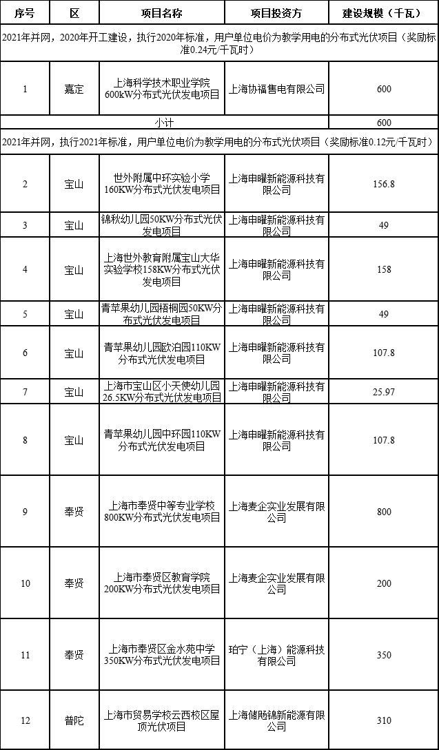 根據(jù)《上海市可再生能源和新能源發(fā)展專(zhuān)項(xiàng)資金扶持辦法》(滬發(fā)改能源〔2016〕136號(hào),以下稱(chēng)“136號(hào)文”)、《上海市可再生能源和新能源發(fā)展專(zhuān)項(xiàng)資金扶持辦法(2020版)》(滬發(fā)改規(guī)范〔2020〕7號(hào),以下稱(chēng)“7號(hào)文”)和《關(guān)于做好2021年可再生能源和新能源發(fā)展專(zhuān)項(xiàng)資金扶持項(xiàng)目申報(bào)和獎(jiǎng)勵(lì)資金申請(qǐng)工作的通知》(滬發(fā)改能源〔2021〕18號(hào),以下稱(chēng)“18號(hào)文”),我委會(huì)同市財(cái)政局組織開(kāi)展了2022年第二批可再生能源專(zhuān)項(xiàng)資金扶持項(xiàng)目申報(bào)和評(píng)審工作。經(jīng)各區(qū)初審、委托市節(jié)能減排中心評(píng)審和社會(huì)公示,現(xiàn)將有關(guān)事項(xiàng)通知如下。