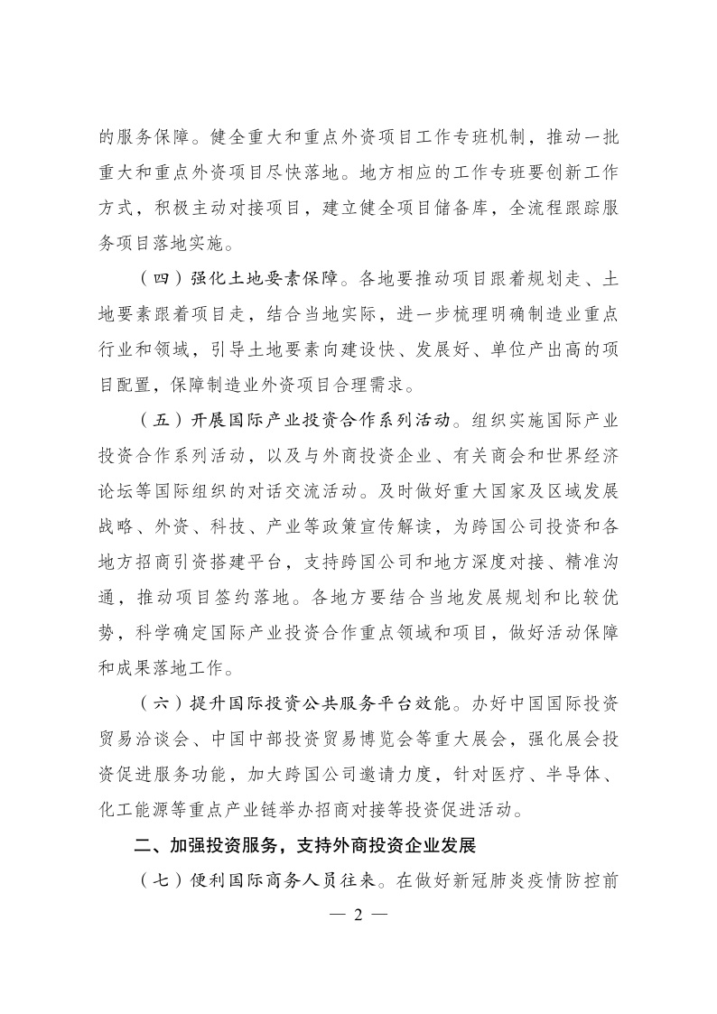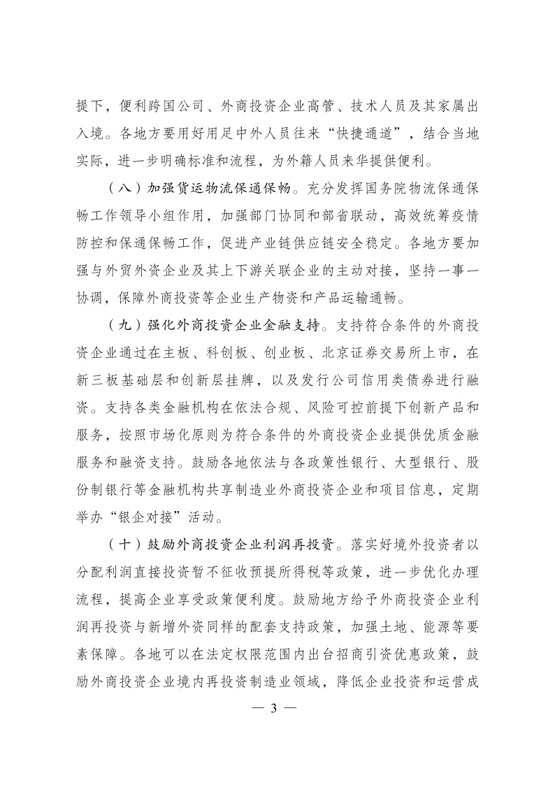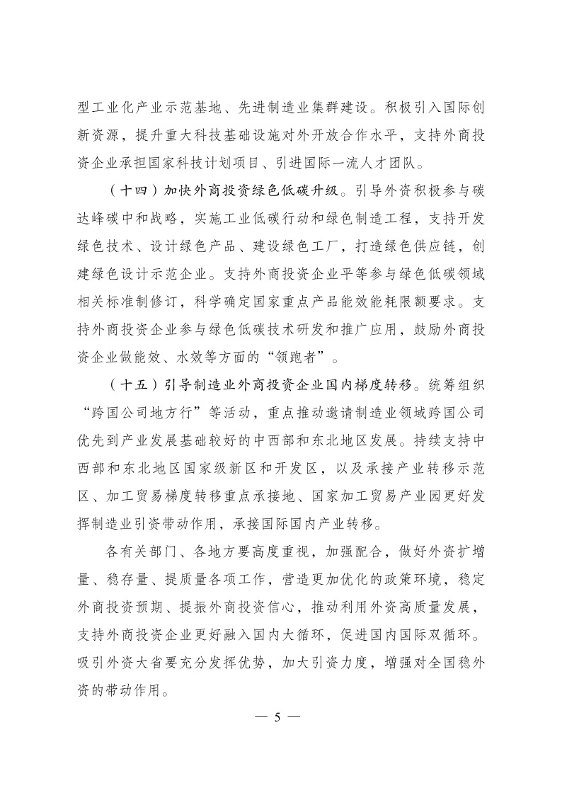 促進外資擴增量穩(wěn)存量提質量的若干政策措施》的通知