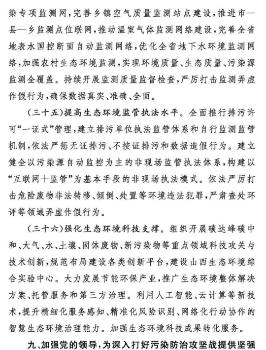 11月8日,山西政府網發(fā)布《關于深入打好污染防治攻堅戰(zhàn)的實施意見》。