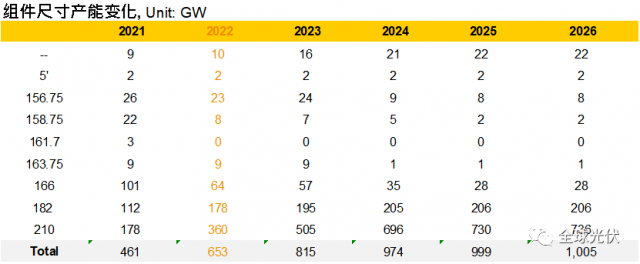 (來源:PV Infolink,尺寸產(chǎn)能為設(shè)備最大兼容規(guī)格)