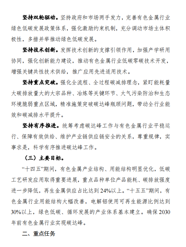 提高可再生能源使用比例,鼓勵(lì)企業(yè)在資源環(huán)境可承載的前提下向可再生能源富集地區(qū)有序轉(zhuǎn)移,逐步減少使用火電的電解鋁產(chǎn)能。利用電解鋁、工業(yè)硅等有色金屬生產(chǎn)用電量大、負(fù)荷穩(wěn)定等特點(diǎn),支持企業(yè)參與以消納可再生能源為主的微電網(wǎng)建設(shè),支持具備條件的園區(qū)開展新能源電力專線供電,提高消納能力。鼓勵(lì)和引導(dǎo)有色金屬企業(yè)通過綠色電力交易、購買綠色電力證書等方式積極消納可再生能源,確??稍偕茉措娏ο{責(zé)任權(quán)重高于本區(qū)域最低消納責(zé)任權(quán)重。力爭2025年、2030年電解鋁使用可再生能源比例分別達(dá)到25%、30%以上。