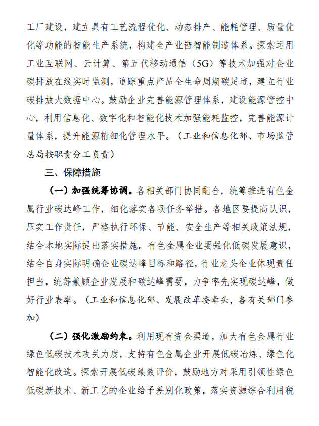 11月15日,工業(yè)和信息化部、國家發(fā)展和改革委員會(huì)和生態(tài)環(huán)境部發(fā)布《關(guān)于印發(fā)有色金屬行業(yè)碳達(dá)峰實(shí)施方案的通知》,(以下簡稱通知)通知指出,控制化石能源消費(fèi)。推進(jìn)有色金屬行業(yè)燃煤窯爐以電代煤,提升用能電氣化水平。在氣源有保障、氣價(jià)可承受的條件下有序推進(jìn)以氣代煤。推動(dòng)落后自備燃煤機(jī)組淘汰關(guān)?;虿捎们鍧嵢剂咸娲?。嚴(yán)禁在國家政策允許的領(lǐng)域以外新(擴(kuò))建燃煤自備電廠,推動(dòng)電解鋁行業(yè)從使用自備電向網(wǎng)電轉(zhuǎn)化。支持企業(yè)參與光伏、風(fēng)電等可再生能源和氫能、儲(chǔ)能系統(tǒng)開發(fā)建設(shè)。加強(qiáng)企業(yè)節(jié)能管理,嚴(yán)格落實(shí)國家強(qiáng)制性節(jié)能標(biāo)準(zhǔn),持續(xù)開展工業(yè)節(jié)能監(jiān)察,規(guī)范企業(yè)用能行為。