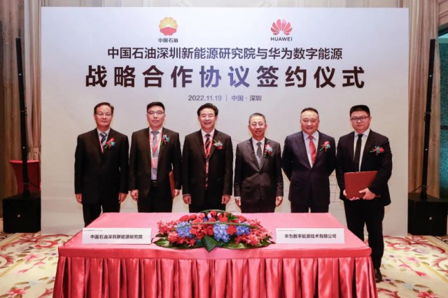 2021年12月8日,華為輪值董事長胡厚崑與中石油總經(jīng)理侯啟軍在北京會面,雙方就綠色低碳轉(zhuǎn)型達成共識,未來將在新能源方面共同推進中國石油的綠色低碳建設(shè),助力中國石油實現(xiàn)碳達峰。在此基礎(chǔ)下,2022年11月19日,中國石油深圳新能源研究院鄒才能院士一行,走進華為數(shù)字能源公司總部-深圳安托山基地,進行了展廳參觀、主題座談、戰(zhàn)略合作協(xié)議簽約等活動,此次戰(zhàn)略合作協(xié)議簽署為雙方前期交流合作的深化落實,雙方在智能光伏、數(shù)據(jù)中心能源、能源綜合化等領(lǐng)域,從標準制定、技術(shù)研發(fā)、商業(yè)應用、人才培養(yǎng)四方面開展合作,共同推進風光儲多能互補和“源網(wǎng)荷儲”一體化建設(shè),實現(xiàn)清潔低碳、安全高效的電力供應,開啟華為數(shù)字能源與中石油在新能源領(lǐng)域戰(zhàn)略合作的新篇章。