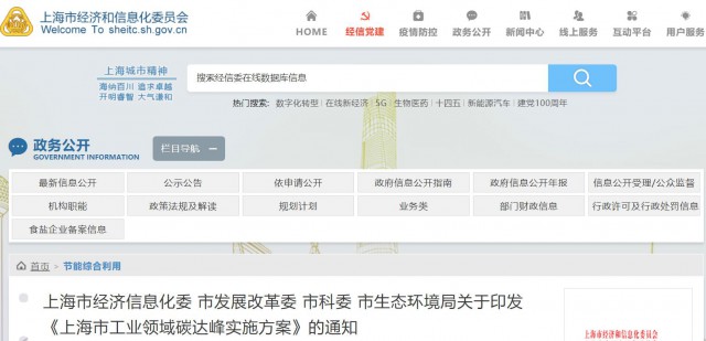 上海市工業(yè)領(lǐng)域碳達(dá)峰實(shí)施方案