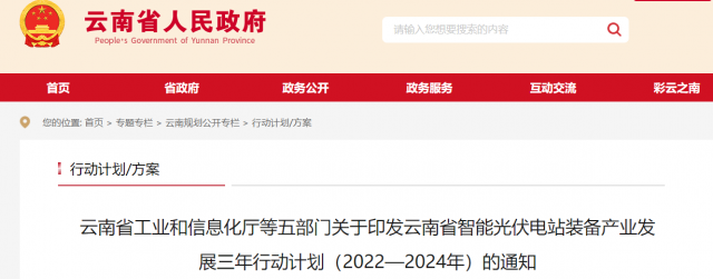 云南省工業(yè)和信息化廳等五部門關(guān)于印發(fā)云南省智能光伏電站裝備產(chǎn)業(yè)發(fā)展三年行動計(jì)劃(2022—2024年)的通知