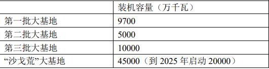 (1)大基地項目:合計約6億千瓦,其中“沙戈荒”大基地2億千瓦+第一批大基地1億千瓦+第二批0.5億千瓦+第三批1億千瓦+第四批1億千瓦。