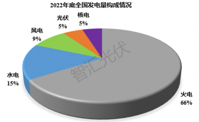 截止2022年底,各類電源累計裝機(jī)結(jié)構(gòu)如下圖所示。其中,風(fēng)電、光伏裝機(jī)占比達(dá)到30%。