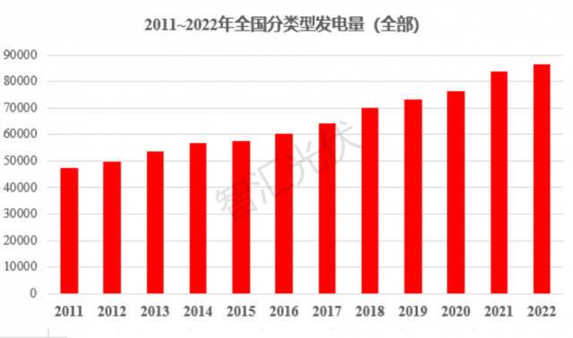 以下是2011-2022年全國各類型發(fā)電量情況。