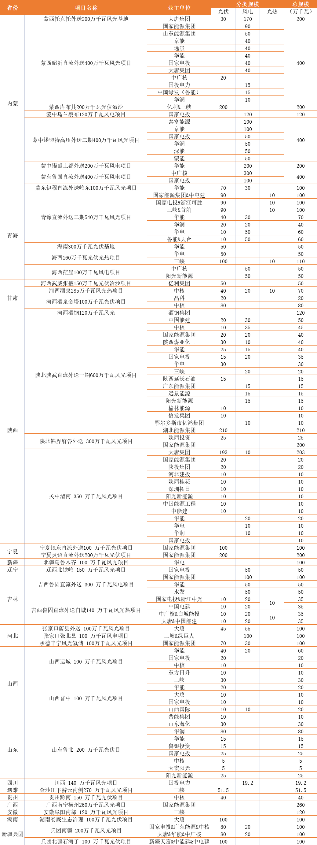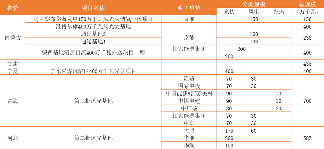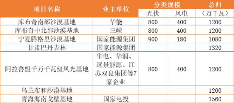 風(fēng)光大基地:國家能源超40GW、國家電投、華能均超20GW