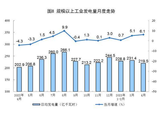 分品種看,4月份,火電、核電、風電增速加快,水電降幅擴大,太陽能(行情000591,診股)發(fā)電由增轉降。其中,火電同比增長11.5%,增速比3月份加快2.4個百分點;核電增長5.7%,增速比3月份加快1.1個百分點;風電增長20.9%,增速比3月份加快20.7個百分點;水電下降25.9%,降幅比3月份擴大10.4個百分點;太陽能發(fā)電下降3.3%,3月份為增長13.9%。