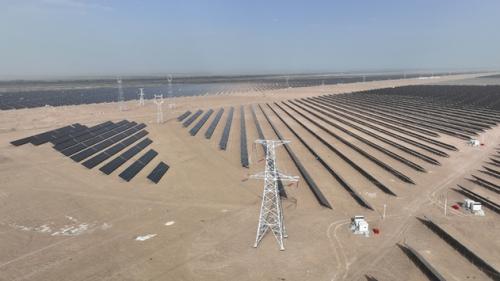 粵水電巴楚光伏項目位于巴楚縣三岔口,該項目總建設(shè)用地面積約9.3萬畝,總建設(shè)規(guī)模為307萬千瓦,共分五期建設(shè)。目前已并網(wǎng)裝機(jī)容量67萬千瓦,可減少碳排放約100萬噸。