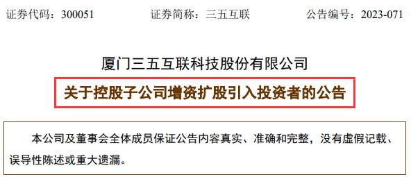 7月18日,三五互聯(lián)(300051.SZ)公告稱,為抓住機遇做大做強光伏新能源業(yè)務,加速光伏產(chǎn)業(yè)布局,控股子公司天津通訊擬以增資前估值20億元人民幣增資擴股引入十位投資者,由其以貨幣方式向天津通訊增資1.95億元,合計獲得天津通訊增資后8.89%股權。