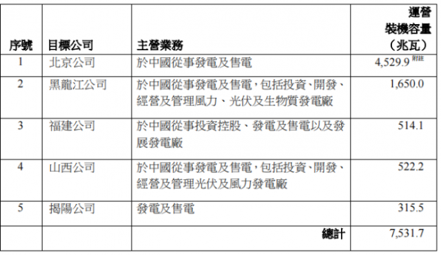 7月26日,中國電力發(fā)布《有關收購事項之主要及關連交易》,公告稱擬向控股股東國家電投收購清潔能源發(fā)電業(yè)務,包括北京電力55.15%、黑龍江電力、福建電力、山西電力及揭陽前詹風電各100%股權,以加速打造公司作為國家電投清潔能源旗艦上市附屬。