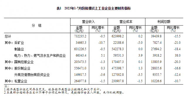 7月份,規(guī)模以上工業(yè)企業(yè)實(shí)現(xiàn)利潤總額5561.0億元,同比下降6.7%。