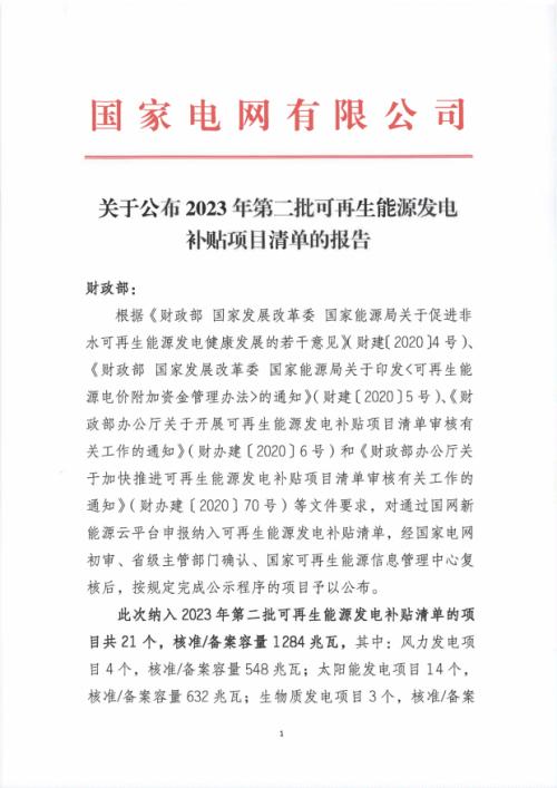 近日,國家電網(wǎng)關(guān)于公布2023年第二批可再生能源發(fā)電補(bǔ)貼項(xiàng)目清單的報(bào)告。