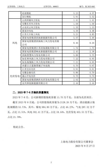 裝機(jī)方面,截至2023年8月底,公司控股裝機(jī)容量為2128.26萬千瓦,清潔能源占裝機(jī)規(guī)模的53.73%,其中:煤電984.80萬千瓦、占比46.27%,氣電287.52萬千瓦、占比13.51%,風(fēng)電392.41萬千瓦、占比18.44%,光伏發(fā)電463.53萬千瓦、占比21.78%。