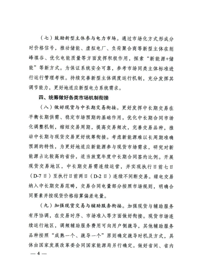 加強現(xiàn)貨交易與輔助服務(wù)銜接。加強現(xiàn)貨與輔助服務(wù)有序協(xié)調(diào),在交易時序、市場準入等方面做好銜接?,F(xiàn)貨市場連續(xù)運行地區(qū),調(diào)頻輔助服務(wù)費用可向用戶側(cè)疏導(dǎo),其他輔助服務(wù)品種按照“成熟一個、疏導(dǎo)一個”原則確定疏導(dǎo)時機及方式,具體由國家發(fā)展改革委會同國家能源局另行確定。做好省間、省內(nèi)現(xiàn)貨市場與區(qū)域輔助服務(wù)市場的銜接融合,提升電力資源優(yōu)化配置效率。