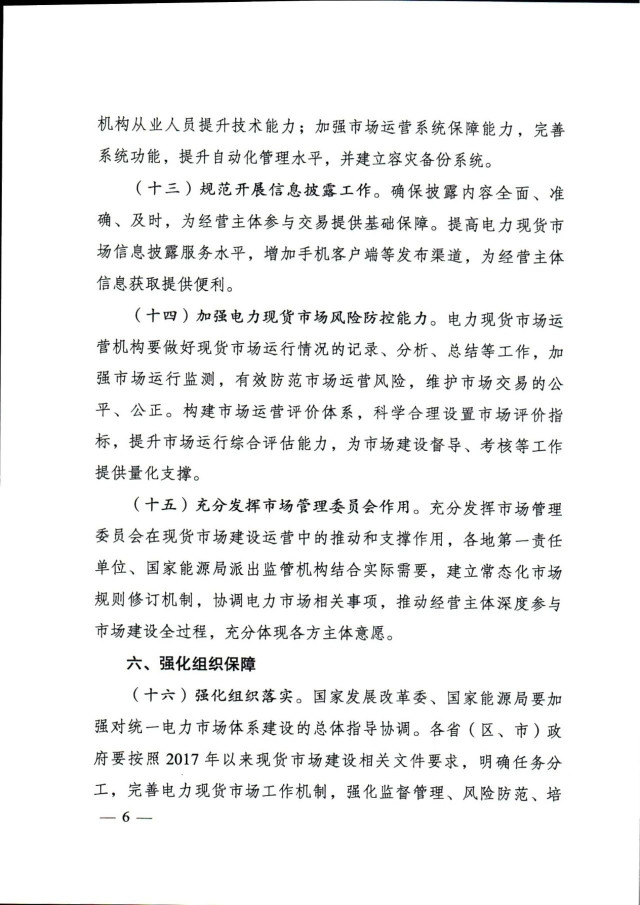 通知提出,加快放開各類電源參與電力現(xiàn)貨市場。按照2030年新能源全面參與市場交易的時間節(jié)點,現(xiàn)貨試點地區(qū)結(jié)合實際制定分步實施方案。分布式新能源裝機占比較高的地區(qū),推動分布式新能源上網(wǎng)電量參與市場,探索參與市場的有效機制。暫未參與所在地區(qū)現(xiàn)貨市場的新能源發(fā)電主體,應(yīng)視為價格接受者參與電力現(xiàn)貨市場出清,可按原有價格機制進行結(jié)算,但須按照規(guī)則進行信息披露,并與其他經(jīng)營主體共同按市場規(guī)則公平承擔(dān)相應(yīng)的不平衡費用。