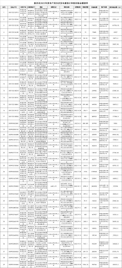 浙江新昌縣2022年非戶用光伏補貼清單公示