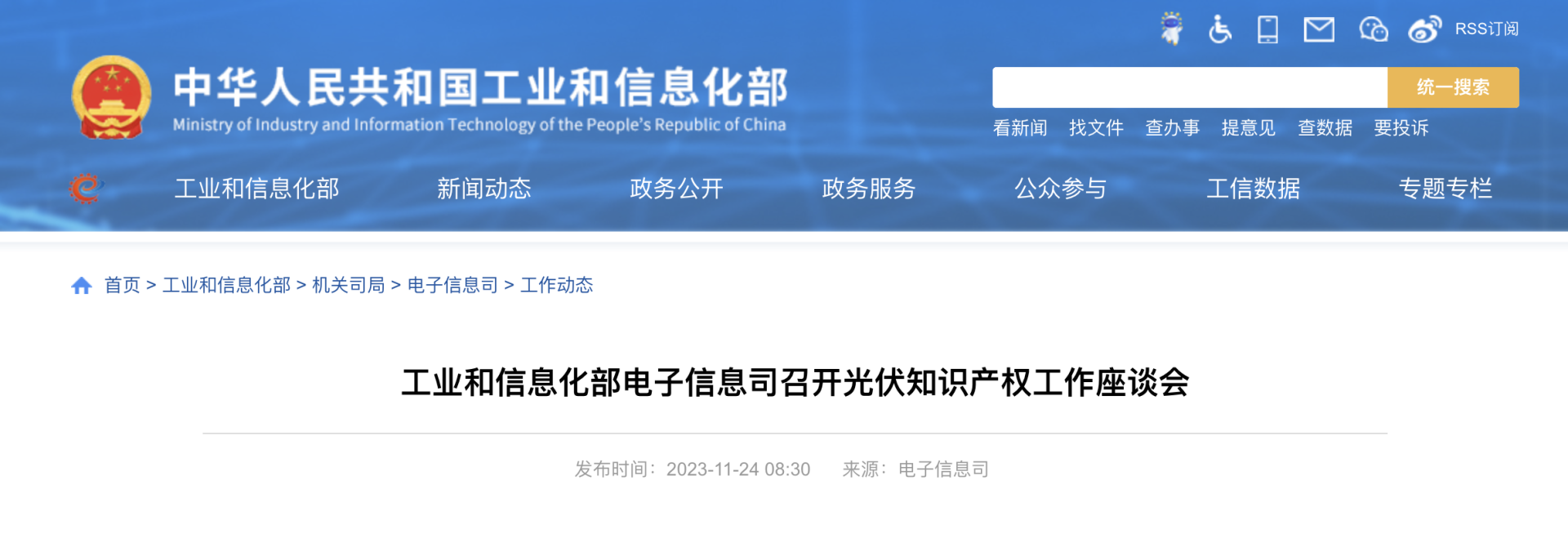 11 月 24 日,據(jù)工業(yè)和信息化部官網消息,近日工業(yè)和信息化部電子信息司在京召開光伏知識產權工作座談會,就開展光伏行業(yè)知識產權體系建設,加強知識產權保護和成果轉化,促進光伏產業(yè)持續(xù)創(chuàng)新發(fā)展,組織有關單位開展工作交流,并對下一步工作進行部署。光伏領域部分骨干企業(yè)、行業(yè)協(xié)會、專利機構、研究機構、律師事務所等有關負責人參加會議。