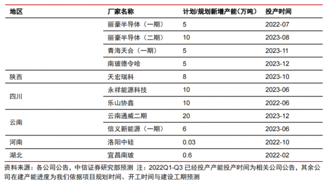 據(jù)悉,三氯氫硅為多晶硅生產(chǎn)及硅烷偶聯(lián)劑生產(chǎn)的必備原材料。中國為多晶硅的主要生產(chǎn)者,且新增產(chǎn)能主要集中于中國。多晶硅產(chǎn)能擴張十分迅速,中信證券王喆在10月11日發(fā)布的研報中統(tǒng)計得到,2022年新增產(chǎn)能將達約70萬噸,2023 年預(yù)計新增產(chǎn)能約164萬噸。