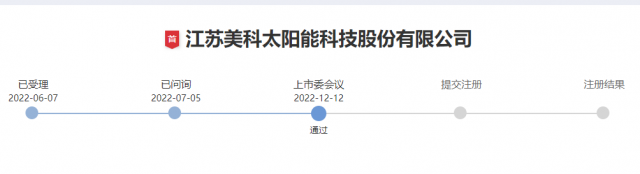 12月12日,據(jù)創(chuàng)業(yè)板上市委員會(huì)2022年第85次審議會(huì)議結(jié)果公告,江蘇美科太陽(yáng)能科技股份有限公司(以下簡(jiǎn)稱“美科股份”)首發(fā)上市獲得通過(guò),成為2022年過(guò)會(huì)的第399家企業(yè)。