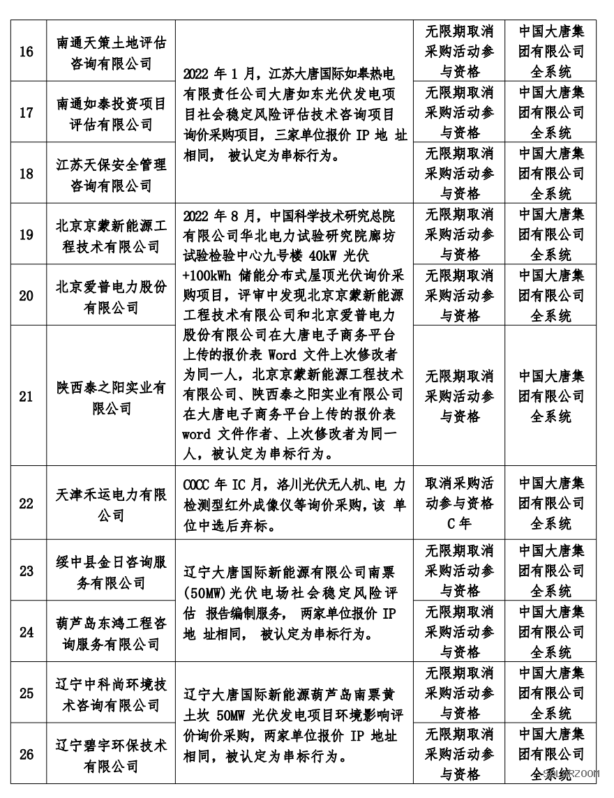 中國大唐集團有限公司關于供應商不良行為處理情況的公告 (2023年第2批)