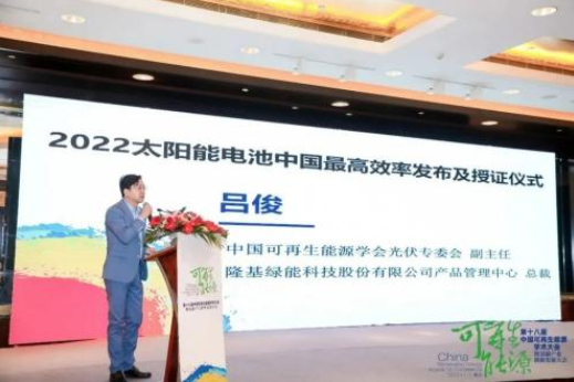 近日,第十八屆中國可再生能源學術大會暨雙碳產業(yè)創(chuàng)新發(fā)展在江蘇南京召開。與會期間,中國可再生能源學會光伏專業(yè)委員會(CPVS)發(fā)布了“2022太陽電池中國最高效率結果”,其中隆基綠能n-HJT電池26.81%、p-HJT電池26.56%、鈣鈦礦/晶硅疊層兩端電池29.55%、鈣鈦礦/晶硅疊層四端電池25.9%,分別獲得了2022年度四個領域的中國最高效率紀錄。同時隆基也在主論壇上發(fā)表了《晶體硅關鍵技術進展》的主題演講,展現了隆基不斷以技術創(chuàng)新驅動光伏度電成本下降的決心。