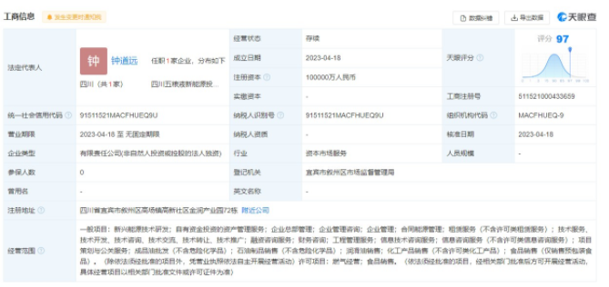 天眼查資料顯示,四川五糧液新能源投資有限責(zé)任公司經(jīng)營(yíng)范圍包括新興能源技術(shù)研發(fā);自有資金投資的資產(chǎn)管理服務(wù);合同能源管理;成品油批發(fā);石油制品銷(xiāo)售;潤(rùn)滑油銷(xiāo)售;燃?xì)饨?jīng)營(yíng)等。