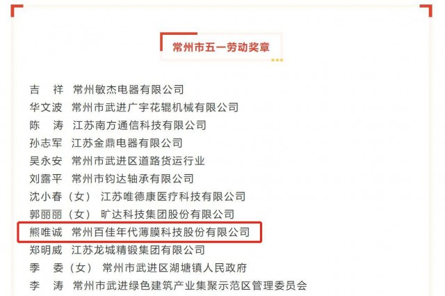 致敬勞動(dòng)者,奮進(jìn)新征程。勞動(dòng)節(jié)前夕,常州市舉行慶祝“五一”國際勞動(dòng)節(jié)大會(huì),對(duì)為我市經(jīng)濟(jì)發(fā)展作出貢獻(xiàn)的先進(jìn)集體和先進(jìn)個(gè)人進(jìn)行表彰,動(dòng)員和號(hào)召全市廣大職工以先進(jìn)為標(biāo)桿,大力弘揚(yáng)勞模精神勞動(dòng)精神工匠精神,為建設(shè)“兩湖”創(chuàng)新區(qū)、打造“新能源之都”、決勝“萬億之城”作出新的更大貢獻(xiàn)。會(huì)上,百佳年代新材料研究院研發(fā)總監(jiān)熊唯誠博士榮獲“常州市五一勞動(dòng)獎(jiǎng)?wù)隆睒s譽(yù)。