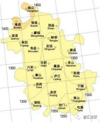 根據(jù)中國(guó)氣象局?jǐn)?shù)據(jù),2022年,安徽省全境平均水平面年總輻射量為1502.8kWh/㎡,最佳傾角總輻射量為1636kWh/㎡。若按照82%的系統(tǒng)效率計(jì)算,首年年利用小時(shí)數(shù)可達(dá)1340小時(shí)。