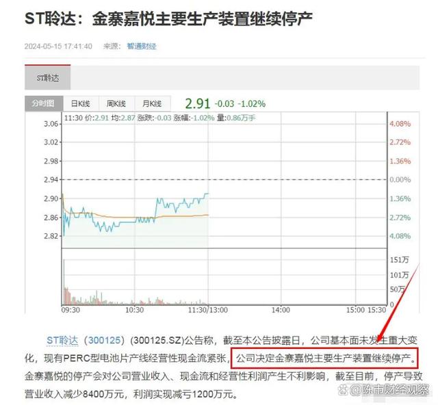 摘要:日前,一則關于“國內(nèi)新能源巨頭、上市企業(yè)-聆達股份旗下光伏大廠金寨嘉悅宣布繼續(xù)停產(chǎn)”的消息在互聯(lián)網(wǎng)平臺傳播,引發(fā)外界的廣泛關注。需要注意的是,在此之前,金寨嘉悅已處于停產(chǎn)狀態(tài)。