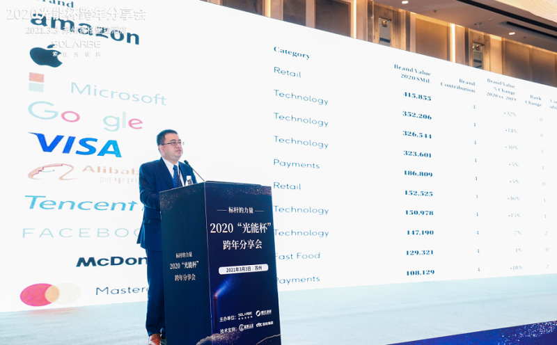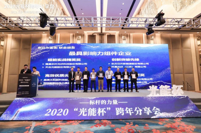3月3日,由索比光伏網(wǎng)主辦的2020年度“光能杯”跨年分享會(huì)暨頒獎(jiǎng)典禮圓滿落幕。這是2021開(kāi)年的全國(guó)首個(gè)大型光伏頒獎(jiǎng)盛宴,來(lái)自中國(guó)各大光伏品牌企業(yè)代表及各地經(jīng)銷商代表齊聚一堂,400余人共同見(jiàn)證中國(guó)光伏行業(yè)的開(kāi)年榮耀時(shí)刻。