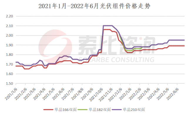 從上圖可以看出,2021年組件價格的高點在10月、11月兩個月,價格2元+/W,這兩個月的新增裝機(jī)分別是3.59GW及5.33GW,到了12月組件價格降到1.8-1.9元/W,12月的新增裝機(jī)漲到18.53GW。