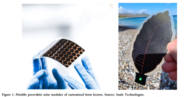 塑料箔的使用還為光伏產(chǎn)品提供了一系列新的優(yōu)勢(shì),其中非成本相關(guān)因素可以提供重要的杠桿作用,例如重量輕、比功率高以及易于與各種表面集成。(7) 將鈣鈦礦與成熟的光伏技術(shù)區(qū)分開(kāi)來(lái)的一個(gè)重要因素是高水平產(chǎn)品定制的可能性,符合客戶在特定應(yīng)用中的需求。 這可以在同時(shí)進(jìn)入市場(chǎng)的同時(shí)實(shí)現(xiàn)更長(zhǎng)時(shí)間的技術(shù)孵化,從而緩解大規(guī)模市場(chǎng)進(jìn)入的挑戰(zhàn)。(8) 定制的柔性鈣鈦礦太陽(yáng)能組件示例如圖 1 所示。