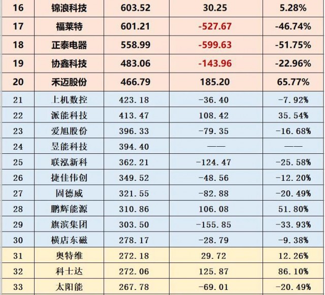 如下表,總市值排在前20的光伏企業(yè),其市值較今年1月1日,其中18家均出現(xiàn)不小幅度下跌。隆基綠能總市值減少1592億,通威股份減少313億,三峽能源跌去577億,陽光電源跌去805億。此外,先導(dǎo)智能、福萊特、正泰電器、晶科科技、海優(yōu)新材等不少企業(yè),相比年初,總市值幾乎都是“腰斬”。