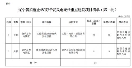 遼寧省發(fā)展改革委關(guān)于對(duì)全省480萬(wàn)千瓦風(fēng)電光伏重點(diǎn)建設(shè)項(xiàng)目未按期建成并網(wǎng)規(guī)模指標(biāo)(第一批)擬廢止的公示