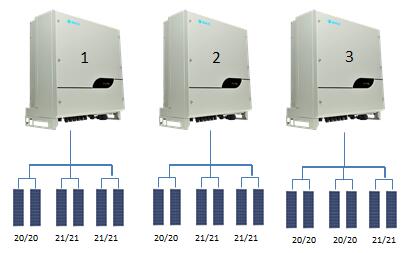 6. 3臺(tái)逆變器組件布局如下圖,三路MPPT,每路為兩路PV并聯(lián)輸入。