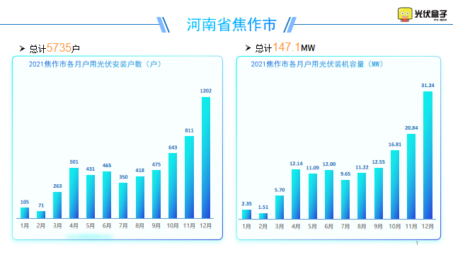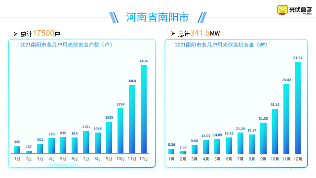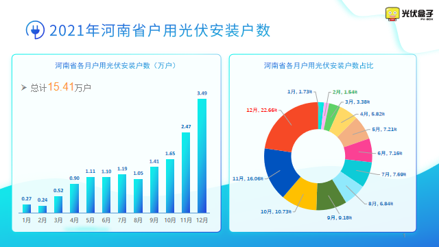 2021年河南省戶用光伏安裝了15.41萬(wàn)戶,12月份安裝戶數(shù)占全年的22.66%。