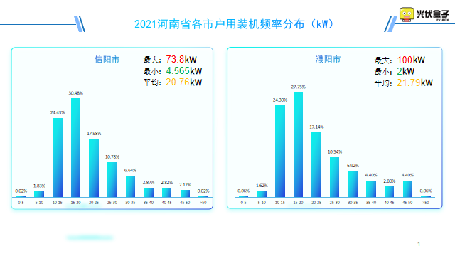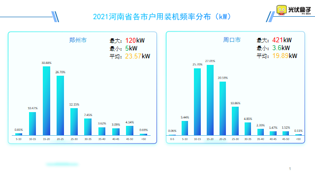 以下是2021年河南省戶用裝機(jī)頻率分布圖,最大單戶裝機(jī)在駐馬店市,為30.4MW。