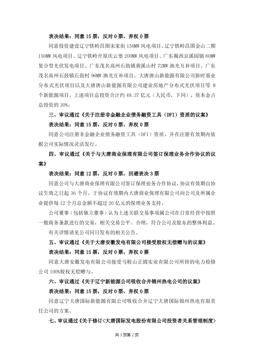 2月22日,大唐發(fā)電發(fā)布公告稱,公司召開第十一屆九次董事會會議,同意投資建設(shè)8個新能源項目,總規(guī)模超過包括: