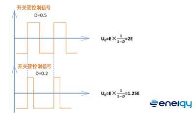 從①式我們可以看到,輸出電壓U0>E,即Boost實(shí)現(xiàn)了其抬升電壓的作用。這時(shí),只要給開(kāi)關(guān)管S一個(gè)合適的占空比控制信號(hào),便可實(shí)現(xiàn)輸出電壓的調(diào)整,并得到想要的電壓值,從而實(shí)現(xiàn)拓寬輸出電壓的目的。