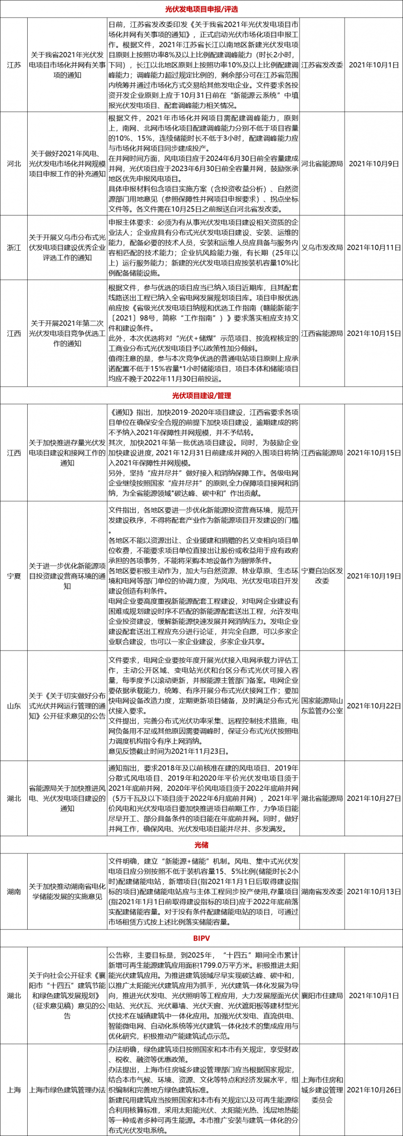 光伏發(fā)電項(xiàng)目申報(bào)/評(píng)選(4條):江蘇、河北、浙江義烏市、江西各1條;