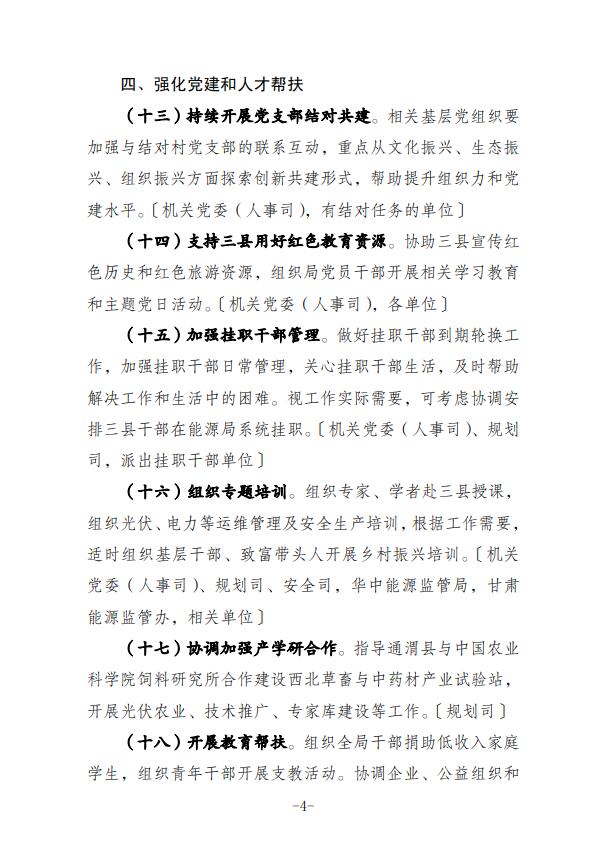 為做好2022年定點幫扶甘肅省通渭縣、清水縣和對口支援江西省信豐縣工作,現(xiàn)印發(fā)《國家能源局2022年鄉(xiāng)村振興定點幫扶和對口支援工作要點》,請按照職責分工扎實推進落實。