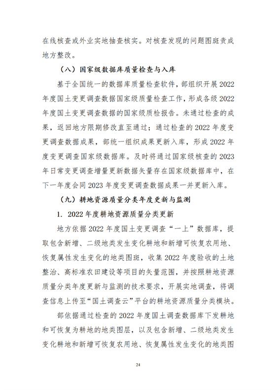 2023年6月15日前,部組織完成2022年度變更調(diào)查最終數(shù)據(jù)庫質(zhì)檢、更新入庫及數(shù)據(jù)匯總分析工作。同時(shí),下發(fā)2022年度耕地資源質(zhì)量分類更新涉及的相關(guān)圖層。
