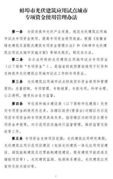 政策中指出,專項(xiàng)資金支持項(xiàng)目范圍為光伏建筑應(yīng)用研究課題,光伏建筑應(yīng)用示范項(xiàng)目建設(shè)(包括光伏建筑一體化應(yīng)用項(xiàng)目建設(shè)、超低能耗建筑及近零能耗建筑建設(shè)、既有建筑節(jié)能改造及儲能項(xiàng)目等),光伏建筑監(jiān)測、檢測體系建設(shè),光伏建筑應(yīng)用宣傳及技術(shù)培訓(xùn)等。