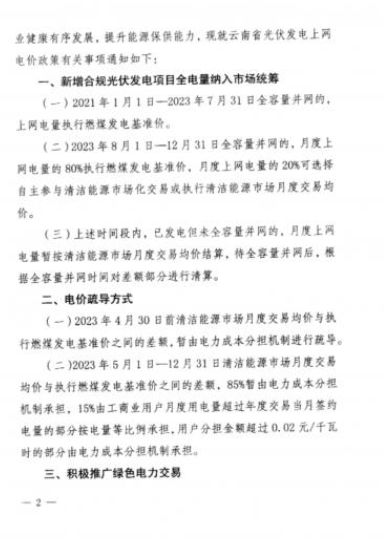 此外,云南省還要求積極推廣綠色電力交易,具備條件的新增新能源市場(chǎng)化交易可納入綠色電力交易范疇。