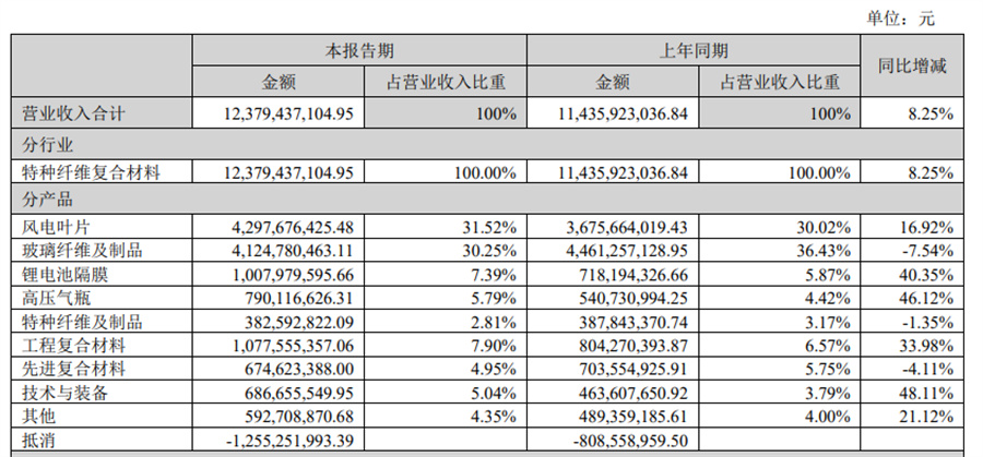 中材科技作為頭部葉片企業(yè),報(bào)告期內(nèi),合計(jì)銷(xiāo)售風(fēng)電葉片9.6GW,同比增長(zhǎng)27.4%(其中,中復(fù)連眾銷(xiāo)量2.3GW),實(shí)現(xiàn)風(fēng)電葉片銷(xiāo)售收入43.0億元,歸母凈利潤(rùn)3.5億元,毛利率提升至17.2%,同比提升11.3個(gè)百分點(diǎn)。