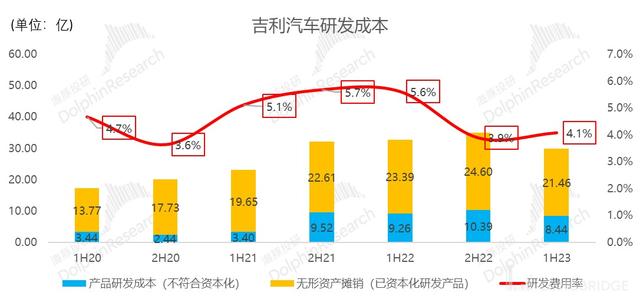 在吉利正在往電動(dòng)、智能化轉(zhuǎn)型的方向上,夾雜吉利燃油、電動(dòng)的渠道梳理及變革,經(jīng)營費(fèi)用過于剛性,只能靠銷售釋放來稀釋投入,本季度吉利在研發(fā)和銷售等剛性費(fèi)用支出繼續(xù)加大,但符合海豚君預(yù)期。
